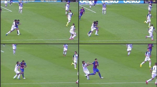 Trong pha tranh chấp với hậu vệ Arribas của Deportivo, Suarez đã đấm vào mặt đối thủ. Đáng nói, trọng tài chỉ cảnh cáo tiền đạo của Barca chứ không có bất kỳ biện pháp trừng phạt nào.