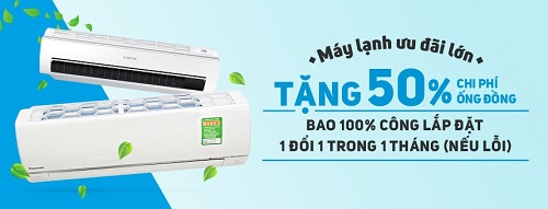 Với các khách hàng lựa chọn Tivi Samsung từ 32” trở lên sẽ nhận được quà tặng từ 200.000 đến 1,5 triệu đồng. Các sản phẩm máy lạnh cũng sẽ có 3 ưu đãi lớn: giảm 50\% chi phí ống đồng, miễn phí hoàn toàn công lắp đặt, và 1 đổi 1 sản phẩm lỗi trong tháng này.