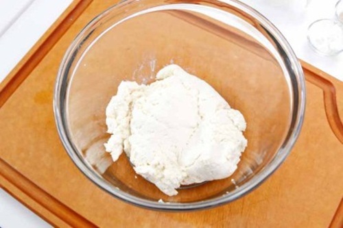 Đậu phụ cho vào khăn vắt bớt nước rồi bỏ vào tô trộn.