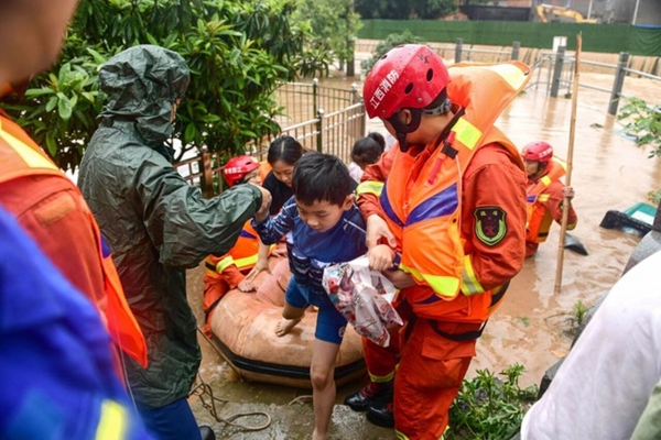 Nhân viên cứu hộ đưa người dân khỏi khu vực mắc kẹt tại Giang Tây. |