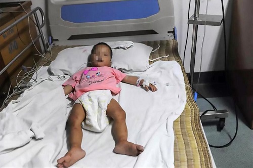 Bé Yueqiao đang được chăm sóc tại bệnh viện. Ảnh: Getty |