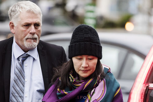 Giám đốc tài chính Huawei Mạnh Vãn Chu (phải) xuất hiện tại Vancouve. AP. |