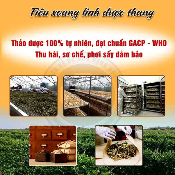 Để làm được điều này, các bác sĩ đã nghiên cứu và phối hợp các thành phần trong bài thuốc Tiêu xoang linh dược thang theo tỷ lệ VÀNG gồm các thảo dược: Tang diệp, tang ký sinh, trần bì, bạch chỉ, xuyên khung, hoắc hương, bạc hà, phòng phong, hoàng cầm, khương hoạt, cát căn, khổ sâm, bồ công anh,... và một số thảo dược bí truyền khác được điều chỉnh theo từng tình trạng bệnh.
