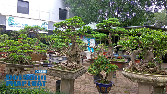 Phía trong khuôn viên Trung tâm VHTT&TT quận Tây Hồ bị biến thành nơi trưng bày cây cảnh của Công ty TNHH cây cảnh Hải Thịnh. |