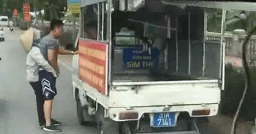 Người quay clip chất vấn về trang phục của trung úy Lâm nhưng không nhận được câu trả lời. Sau đó, nam thanh niên lái xe bỏ đi cùng số hàng hóa của người bán hàng rong.