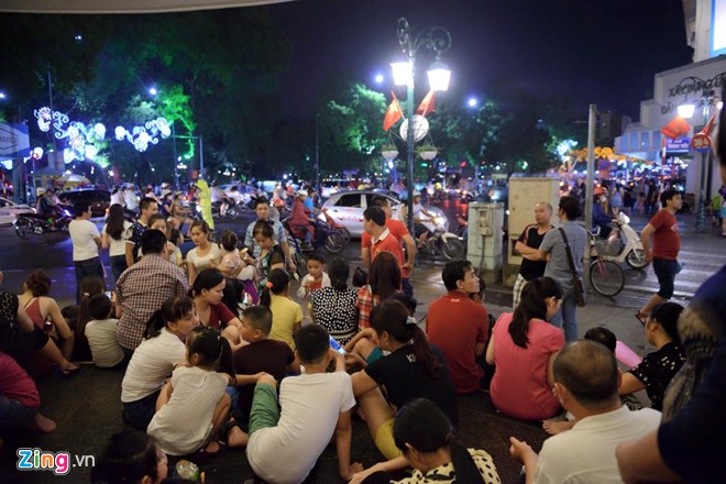 Các ngả đường hướng ra địa điểm tổ chức bắn pháo hoa như Hồ Gươm, công viên Thống Nhất, sân vận động Quốc gia Mỹ Đình... đông nghịt người.