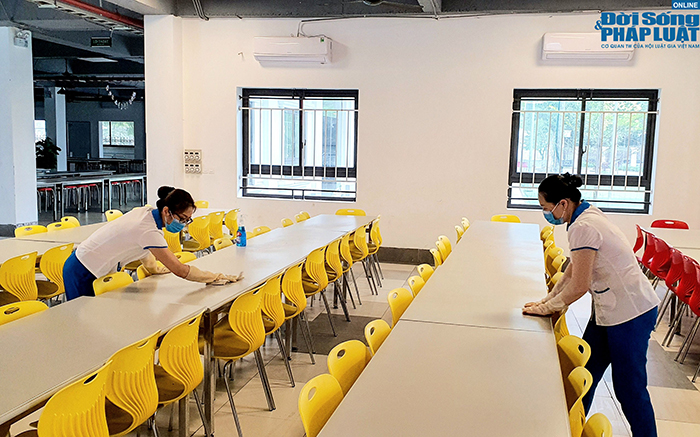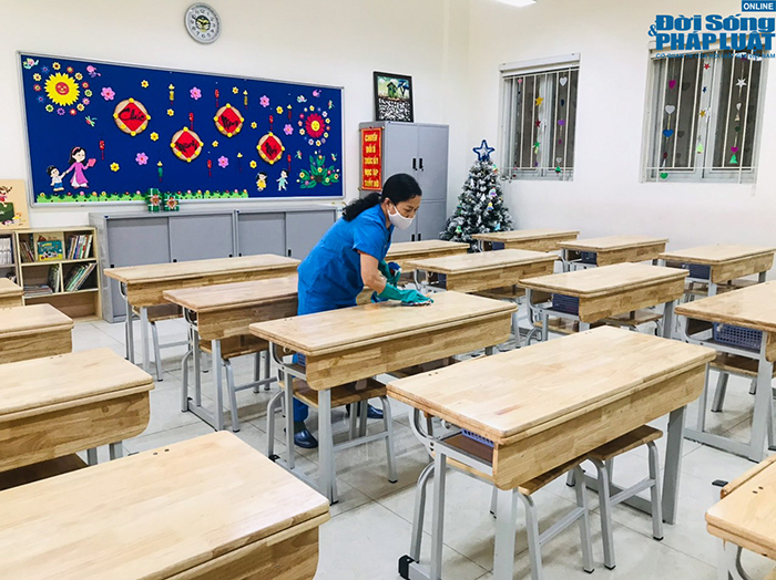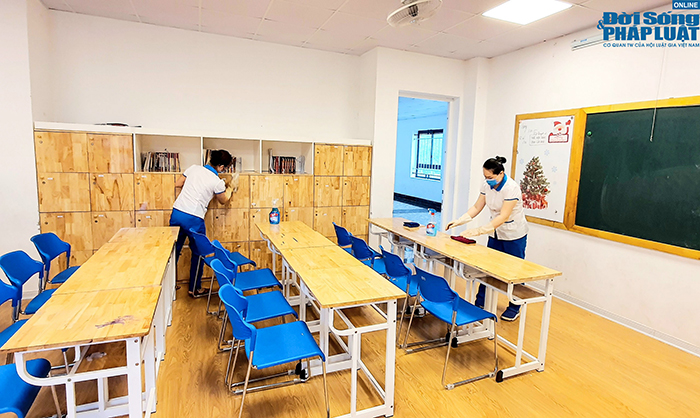 Theo ghi nhận của PV Đời sống và Pháp luật, tại trường Tiểu học Tràng An (quận Hoàn Kiếm, Hà Nội), nhà trường đã tiến hành lau chùi toàn bộ cơ sở vật chất, đồng thời dọn vệ sinh từng lớp học.