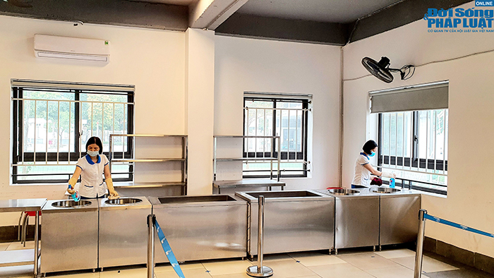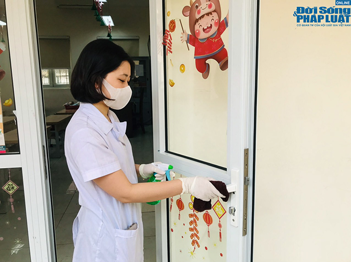 Tại trường THCS Nguyễn Tri Phương (Quận Ba Đình), sáng 27/2, giáo viên và cán bộ nhà trường đã tổng vệ sinh toàn bộ cơ sở vật chất, sát trùng các bề mặt, thống kê - sắp xếp và bổ sung các trang thiết bị phòng dịch vốn đã được chuẩn bị từ trước khi nghỉ dịch.