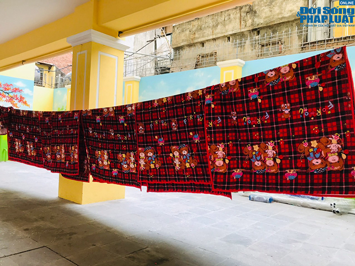 Chăn, ga gối của học sinh được mang ra giặt và phơi khô. |