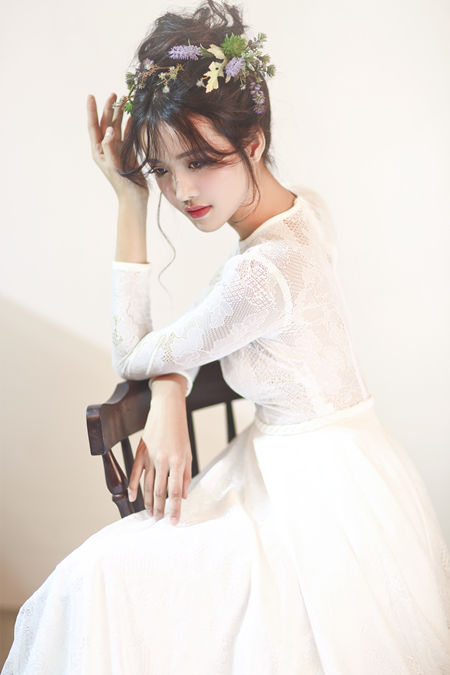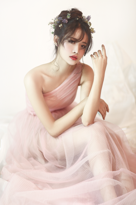 | Diện những chiếc đầm dáng xòe màu trắng, hồng điệu đà và nữ tính, mái tóc búi lọn cao được điểm xuyết bởi những nhành hoa nhỏ xinh càng tôn thêm nét duyên dáng, yêu kiều và lãng mạn cho Trương Mỹ Nhân. |