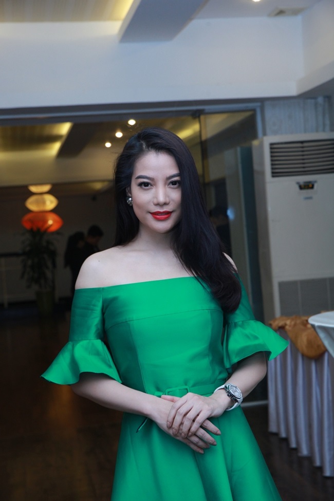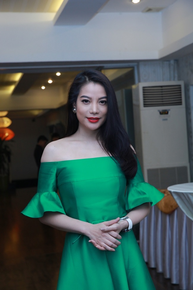 | Trương Ngọc Ánh thu hút trong chiếc đầm xanh hở vai quyến rũ. |