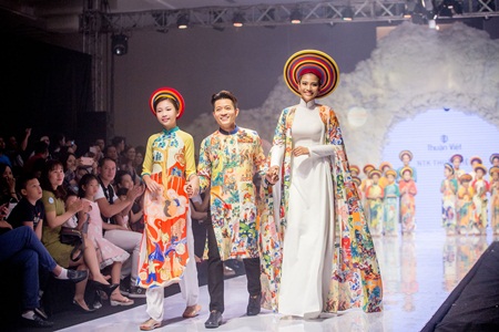 Trong chương trình từ thiện mang tên “Ước mơ thiên thần”, NTK Thuận Việt đã mang đến những mẫu thiết kế ấn tượng dành cho trẻ em và đồng thời là bộ áo dài vedette với những họa tiết vui nhộn dành cho Trương Thị May.