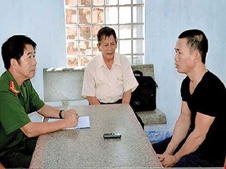 Đại tá Phạm Thật đang lấy lời khai Nguyễn Thọ - áo đen (Ảnh: Dân Việt) |
