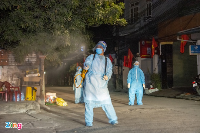 Phun thuốc khử trùng tuyến phố nơi bệnh nhân 1553 sinh sống ở Quảng Ninh. Ảnh: Tri thức Trực tuyến |