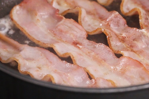 Thịt giăm bông và xông khói cũng dùng chảo chiên chín.