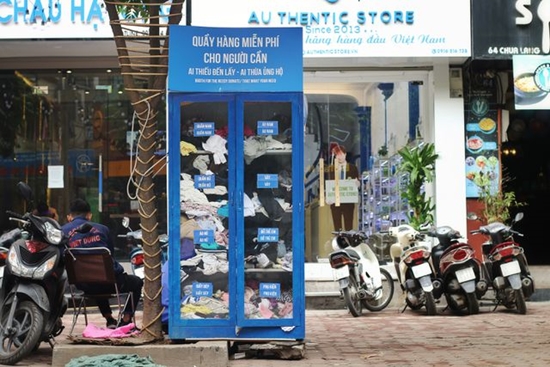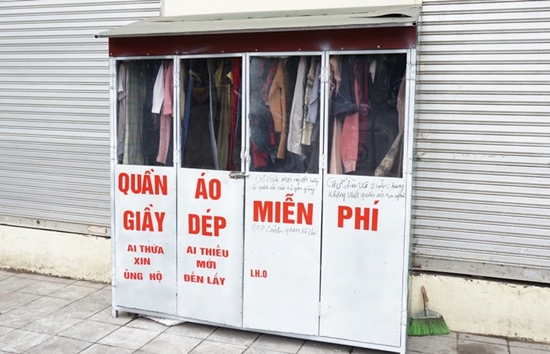 Với khẩu hiệu “Ai thiếu đến lấy, ai thừa ủng hộ”, những tủ đồ miễn phí như một cửa hàng quần áo thu nhỏ. |