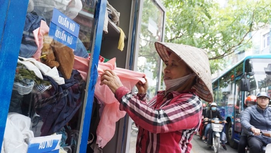 Việc xuất hiện hàng loại những tủ đồ quần áo cũ miễn phí tại nhiều địa điểm khác nhau ở Hà Nội đã mang lại niềm vui cho người lao động nghèo.