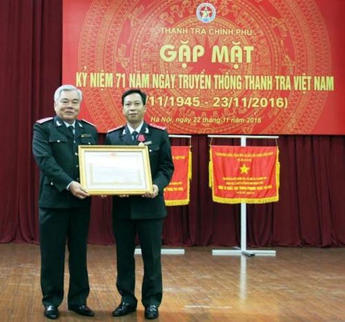 Phó Tổng Thanh tra Đặng Công Huẩn, Chủ tịch Hội đồng thi đua khen thưởng ngành Thanh tra tặng Cờ Thi đua của Chính phủ cho Cục Giải quyết KN,TC và Thanh tra khu vực 2 và Cục Chống tham nhũng vì đã hoàn thành xuất sắc, toàn diện công tác, dẫn đầu phong trào thi đua yêu nước ngành Thanh tra 2015.