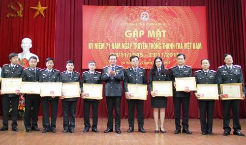 Tổng Thanh tra cũng tặng thưởng Bằng khen của Thủ tướng Chính phủ cho Văn Phòng TTCP và các cá nhân gồm Phó Tổng Thanh tra Nguyễn Đức Hạnh, Trưởng Ban Tiếp dân Trung ương Nguyễn Hồng Điệp và Phó Vụ trưởng Vụ Tổ chức Cán bộ Ngô Văn Cường vì đã có thành tích trong công tác từ năm 2011 đến năm 2015, góp phần vào sự nghiệp xây dựng chủ nghĩa xã hội và bảo vệ Tổ quốc.