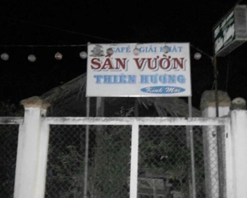 Quán cà phê sân vườn, nơi xác định ông T. gục chết trên võng trong chòi lá - Ảnh: Người Đưa Tin |