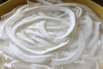 - Rửa sạch phần sợi dừa với nước ấm để loại bớt tinh dầu có trong cơm dừa, sau đó xả lại nước lạnh cho thật sạch và để ráo nước.