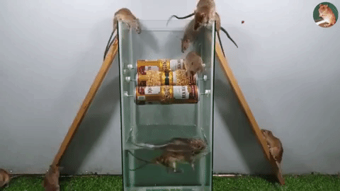 Có thể thấy, dù trong bể đã có vài con chuột ngã xuống, nhưng những con chuột vẫn bị mồi thóc hấp dẫn và tiếp tục với xuống để ăn.