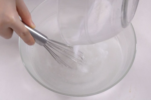Đổ nước đun sôi vào hỗn hợp bột và khuấy thật đều tay. Để dung dịch nguội ở nhiệt độ thường.