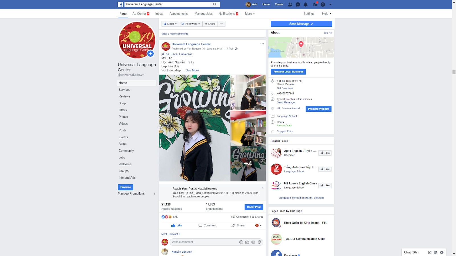 Chia sẻ với phóng viên về thành công bất ngờ của cuộc thi The Face Universal 2019, đại diện Universal Language Center nói rằng các hoạt động ngoại khóa được Universal Language Center chú trọng tổ chức dành cho các học viên. Nhiều người thấy lạ khi một trung tâm Anh ngữ lại tổ chức cuộc thi chụp ảnh, thế nhưng Universal tin rằng những hoạt động ngoại khóa, cuộc thi như The Face sẽ giúp các em học viên tự tin hơn, năng động hơn, cũng như truyền cảm hứng, tạo tinh thần vui vẻ, thoải mái để các em học tập tốt nhất. Universal cũng muốn thông qua các cuộc thi và hoạt động như này để đưa mọi người xích lại gần nhau hơn, biến Universal không chỉ là một trung tâm dạy tiếng Anh mà còn là một ngôi nhà ấm cúng.