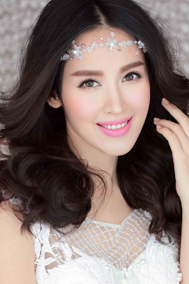 | Với vẻ đẹp thánh thiện đậm chất Á đông cùng nụ cười tỏa nắng, nữ diễn viên chọn phong cách trang điểm trong trẻo, tự nhiên để làm nổi bật các đường nét trên khuôn mặt khi diện váy cưới. |