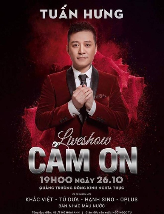 Tuấn Hưng sẽ thực hiện liveshow vào 26/10 tới đây tại quảng trường Đông Kinh Nghĩa Thục với tên "Cảm ơn" để gửi lời tri ân tới tất cả mọi người.