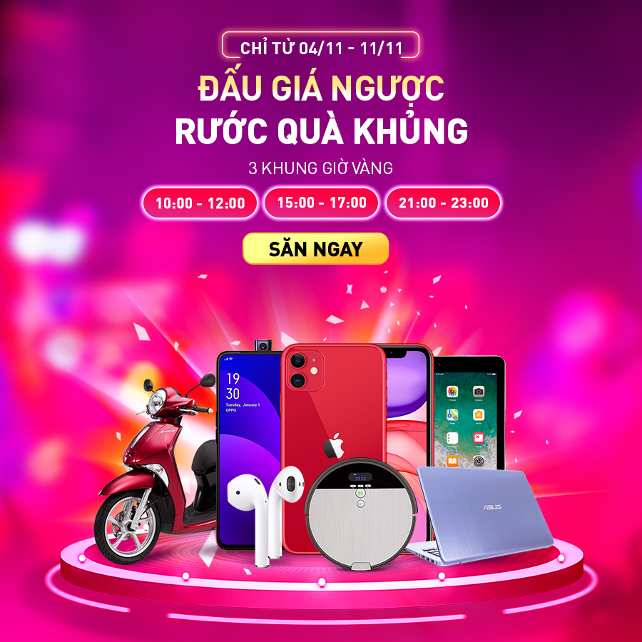 Adayroi còn chơi lớn với game “Đấu giá ngược” hấp dẫn trong 3 khung giờ mỗi ngày, liên tục từ 4/11 đến 11/11. Là sàn TMĐT hợp tác với rất nhiều thương hiệu tên tuổi, sản phẩm được đưa ra đấu giá cũng vô cùng đặc biệt: iPhone 11, xe tay ga Yamaha Janus, điện thoại Oppo F11 Pro mới ra mắt, iPad, Airpod, hay các sản phẩm thời trang, mỹ phẩm của các thương hiệu nổi tiếng Versace, NineWest, Daniel Wellington, Clinique....