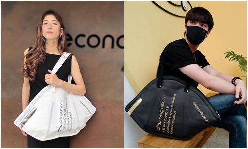 Giới trẻ Thái Lan rộ mốt đeo túi khẩu trang khổng lồ