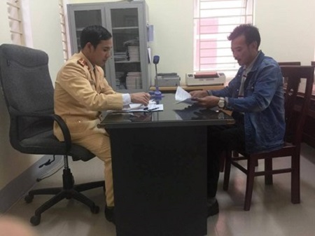 Tài xế Hoàng Văn Nghĩa đến trình diện và nhận hình phạt tại Phòng CSGT tỉnh Nghệ An (Ảnh: báo Tiền Phong) |