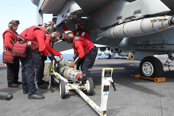 Lắp tên lửa cho tiêm kích trên tàu sân bay USS Abraham Lincoln của Mỹ. Ảnh: Reuters |