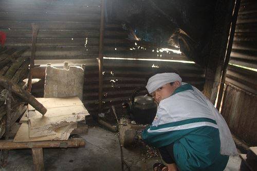Đang lúi húi nấu ăn trưa, thấy có khách đến, cậu bé gầy gò với ánh mắt xa xăm gượng cười giải thích:“Từ khi mẹ em mất thì chẳng có ai nấu cho em ăn nữa cả, vì thế cứ đi học về em mới đạp xe đi chợ và tự nấu cơm, sống một mình nên ăn uống cũng đơn giản lắm”.
