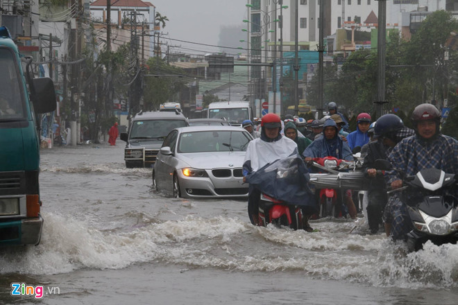 | Nhiều tuyến đường ở TP Nha Trang bị ngập sáng nay (4/11) - Ảnh: Tri thức trực tuyến |
