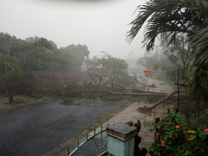 | Trên quốc lộ 1 đoạn qua huyện Tuy An, Phú Yên nhiều cây cối đã bị quật đổ - Ảnh: Vietnamnet |