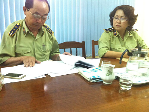 | Lãnh đạo Chi cục QLTT tỉnh Bình Định xem xét hồ sơ của bà Hương. Ảnh: A.T |