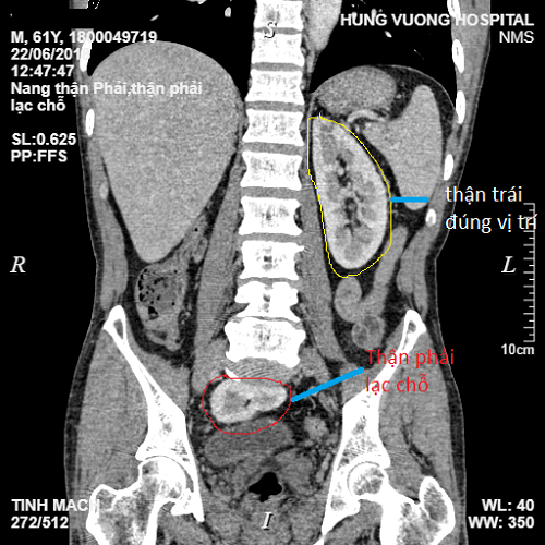 Thận lạc chỗ là bệnh bẩm sinh, thông thường khi thận lạc chỗ quá lâu sẽ không còn hoạt động và thường phải phẫu thuật cắt bỏ. Cách phát hiện tốt nhất là thực hiện chụp CT đa dãy kết hợp siêu âm ổ bụng. Với những bệnh nhân khi siêu âm ổ bụng chỉ phát hiện có một bên thận cần thực hiện CT đa dãy để xác định quả thận còn lại có bị lạc hay không để điều trị kịp thời.