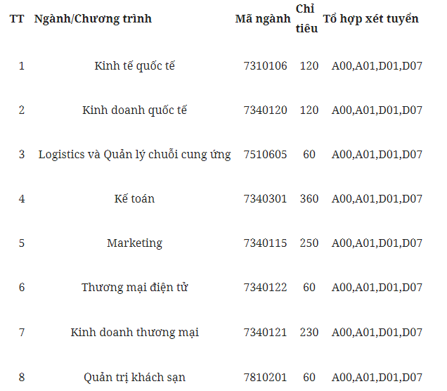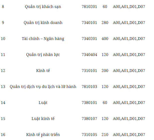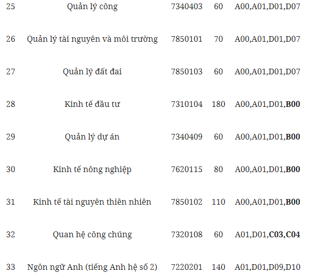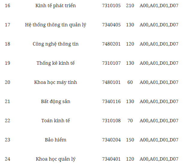 Dưới đây là mã ngành Đại học Kinh tế Quốc dân 2019 các thí sinh có thể tham khảo: