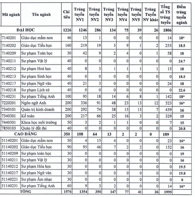 Tuy nhiên, thông báo này cũng cho thấy, riêng bậc ĐH trường có tới 4 ngành không có TS nào trúng tuyển gồm: sư phạm vật lý, sư phạm sinh học, sư phạm lịch sử và quản lý đất đai.