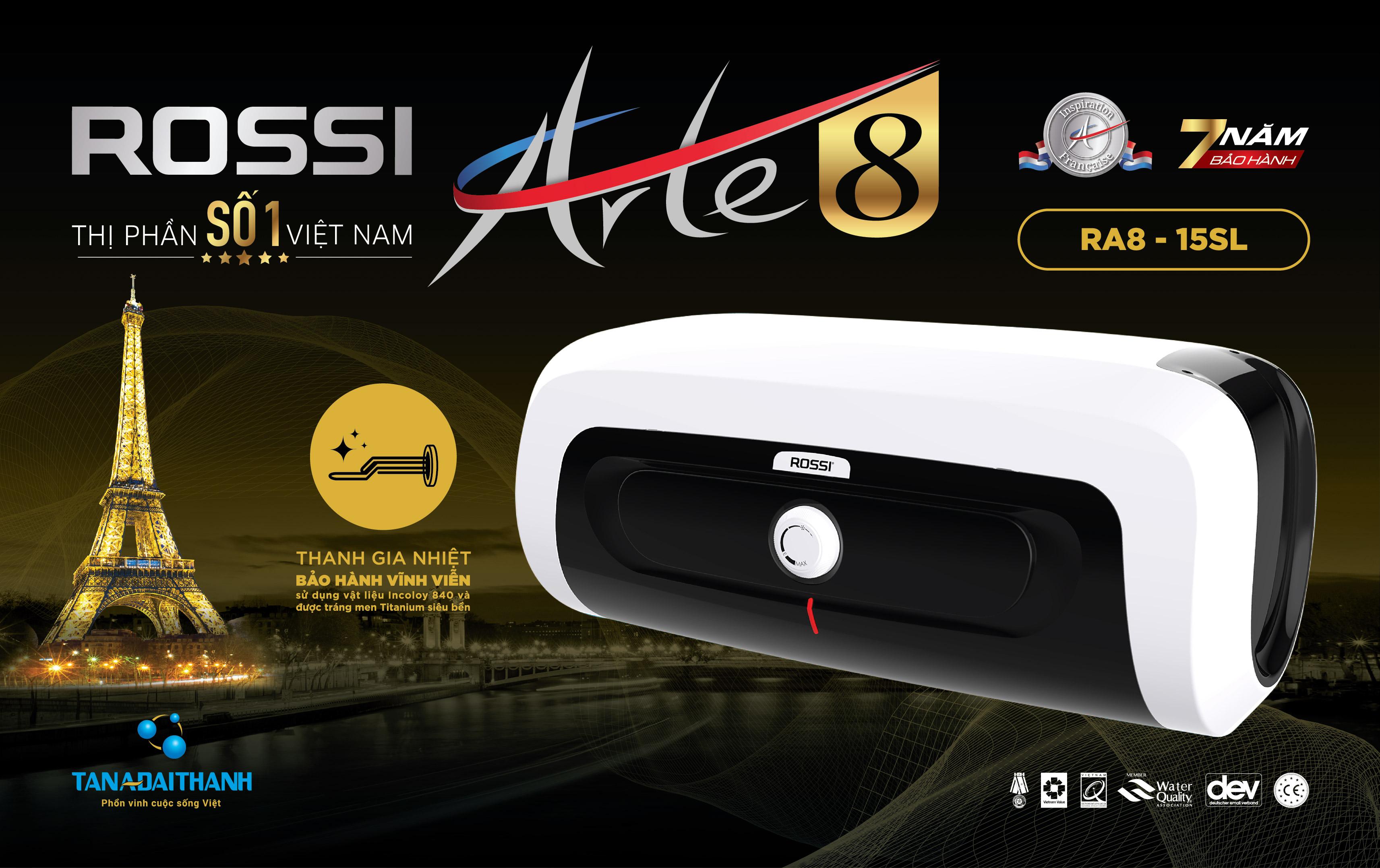 | Bình nước nóng Rossi Arte 8 – phiên bản 2019 của dòng sản phẩm Rossi Arte |