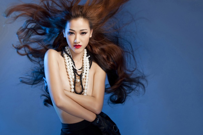 | Thu Minh cũng đã từng chụp hình che ngực trần. |