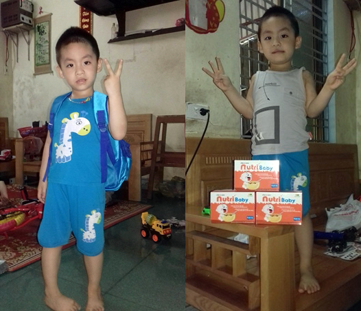 Chị Thương còn tìm mua nhiều loại thuốc bổ sung dinh dưỡng và tăng cường chức năng hệ tiêu hóa để kích thích con ăn tốt hơn nhưng cuối cùng đều phải “đầu hàng” trước con. Con vẫn thờ ơ với đồ ăn, vẫn còi và không có cải thiện về cân nặng. Rồi như “chết đuối vớ được cọc”, chị vô tình đọc được trên mạng bài chia sẻ kinh nghiệm của các bà mẹ trong “cuộc chiến” với bé biếng ăn. Chị tìm hiểu kỹ về cốm vi sinh NutriBaby và quyết định cho con “làm quen” với người bạn mới này. Mỗi ngày mẹ cho Bim dùng 2-3 gói NutriBaby trước bữa ăn 30, đã thay đổi hoàn toàn, chị mừng rơi nước mắt khi nghe con nói: “Mẹ ơi, con đói!”.