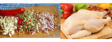 rút gà ra đĩa, trang trí ớt xắt lát, ngò rí