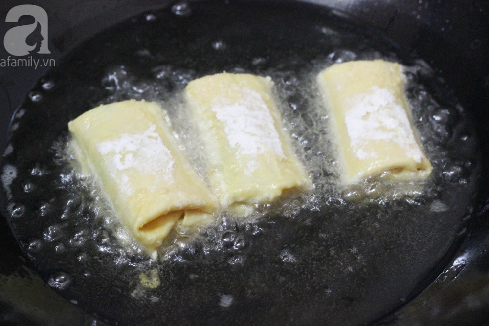 Bước 8: Khi nem vàng đều thì bạn vớt ra giấy thấm dầu cho ráo.