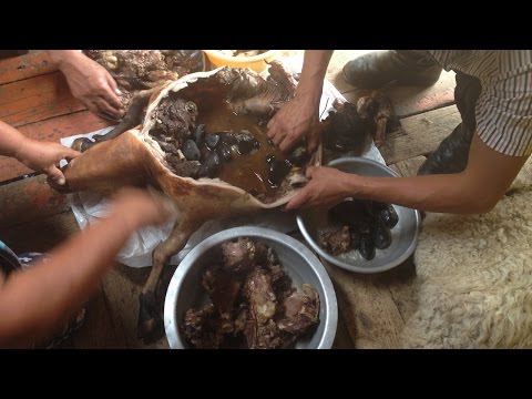 Lớp da thịt của dê sẽ được nhồi thêm muối, ớt bột, tiêu, vài củ hành, khoai tây, gan, cật và đá đã nung nóng trong một tiếng. Đá phải sạch, bề mặt nhẵn và tròn.
