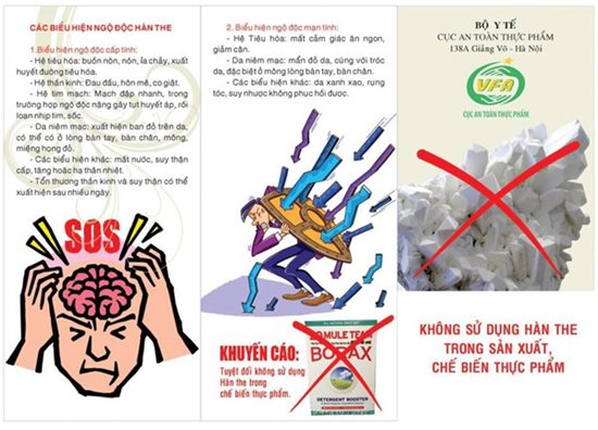 Hàng năm Cục ATTP, Bộ Y tế đều đưa ra những khuyến cáo bằng văn bản, các nội dung tuyên truyền trên các phương tiện truyền thông báo chí, tổ chức phát tờ rơi, chỉ đạo Chi cục An toàn vệ sinh thực phẩm các địa phương tổ chức tập huấn trực tiếp,… Tình trạng sử dụng hàn the trong chế biến thực phẩm đã giảm, nhưng vẫn còn có nhiều trường hợp lén lút sử dụng trong thời gian qua.