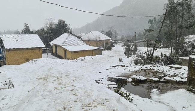 Tuyết tạo thành lớp dày, phủ kín những bãi cỏ cành cây trên mặt đất, có nơi tuyết rơi dày khoảng 3cm.
