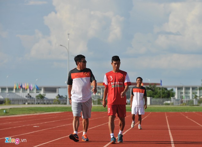 Đúng 16h chiều nay (giờ Việt Nam), thầy trò HLV Graechen có buổi tập trên sân phụ Khu Liên hợp thể thao Wunna Theikdi. Các bác sĩ phải băng đầu gối trái cho Hồng Duy để đảm bảo an toàn trong buổi tập cho hậu vệ mang áo số 7 cùng các đồng đội.